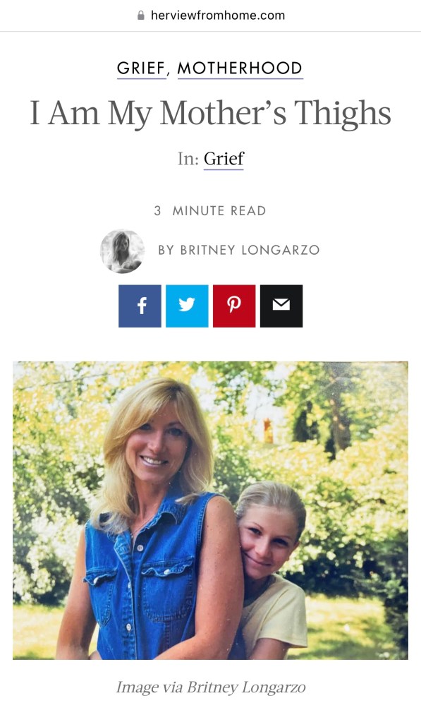 Featured On Click the photos below to view my published writing and features! Life Without My Mom Never Gets Easier – Her View From Home The Baby I Didn’t Know I Needed – Pregnant Chicken Mama, It Is Enough – Reality Moms I Should Have Taken More Photos of My Mom – Her View From Home Dear Fellow Moms, Please Always Correct Me – Scary Mommy It’s Another Motherless Mother’s Day – Her View From Home Learning To Love The Body That Created My Whole World – Today Show Community Page Podcast: You Are Not Your Truma – Healing Birth Podcast Mama, It Is Enough – Today Show Community Page We All Bloom When We Are Ready – Pregnant Chicken Facebook 29 Things I’ve Learned While Grieving For My Mother – Reality Moms Stretch Marks Or Not, I Am Worthy –Today Show Community Page I Am My Mother’s Thighs – Her View From Home I’m Not Doing The Best I Can, And I’m Ok With That – Today Show Community Page More Coming Soon… Share this: Click to share on X (Opens in new window) X Click to share on Facebook (Opens in new window) Facebook Like Loading...